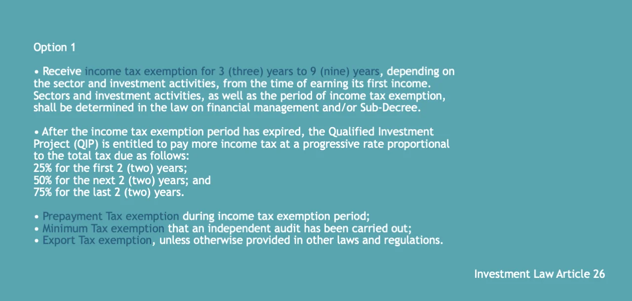 通过柬埔寨发展委员会(CDC)注册的项目,可享有: