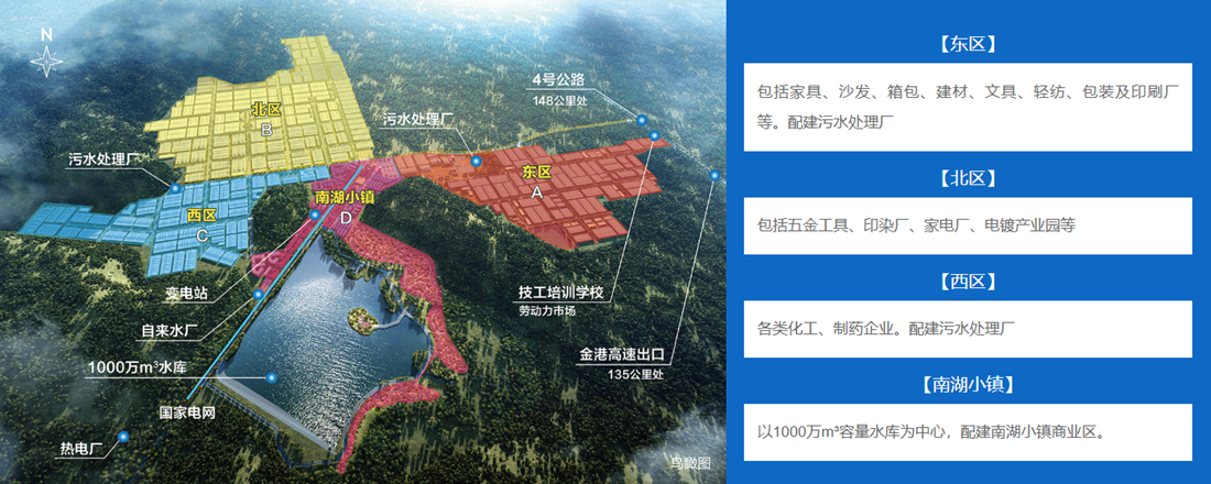 北地块:约514公顷,定位为轮胎厂、印染厂、电镀厂、木薯加工厂、垃圾发电厂、污水处理厂等门类的重工业和化工业区。